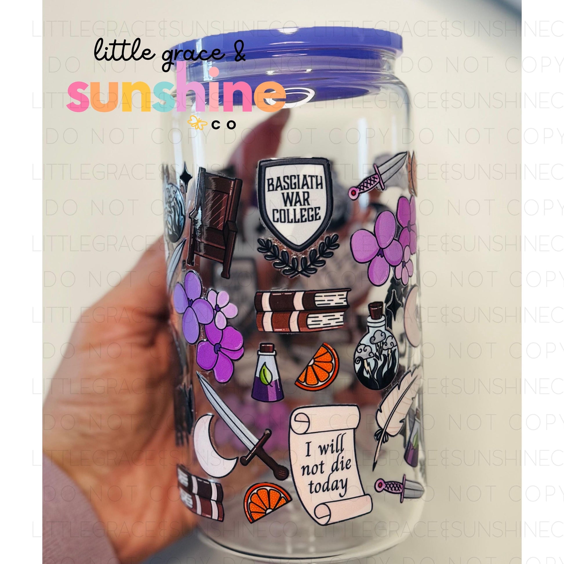 4th Wing Inspired 16 ounce Glass Can Cup | Bookish Cup | Dragon Cup | Booklover Glass Can Cup