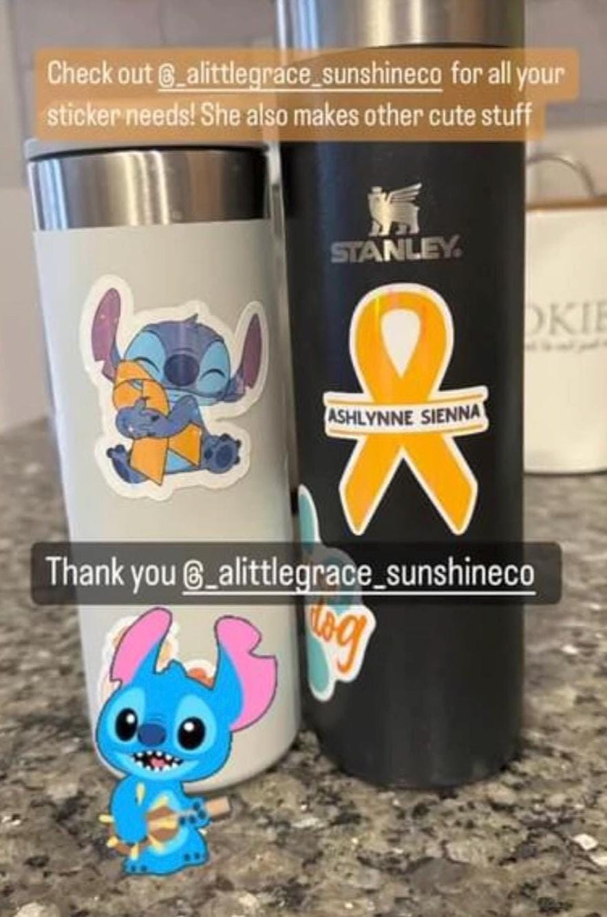 Childhood Cancer Awareness Sticker, Blue Alien Awareness Ribbon sticker, yellow awareness ribbon